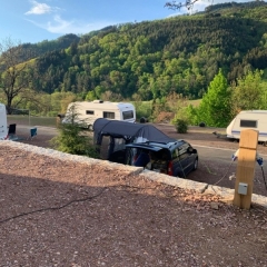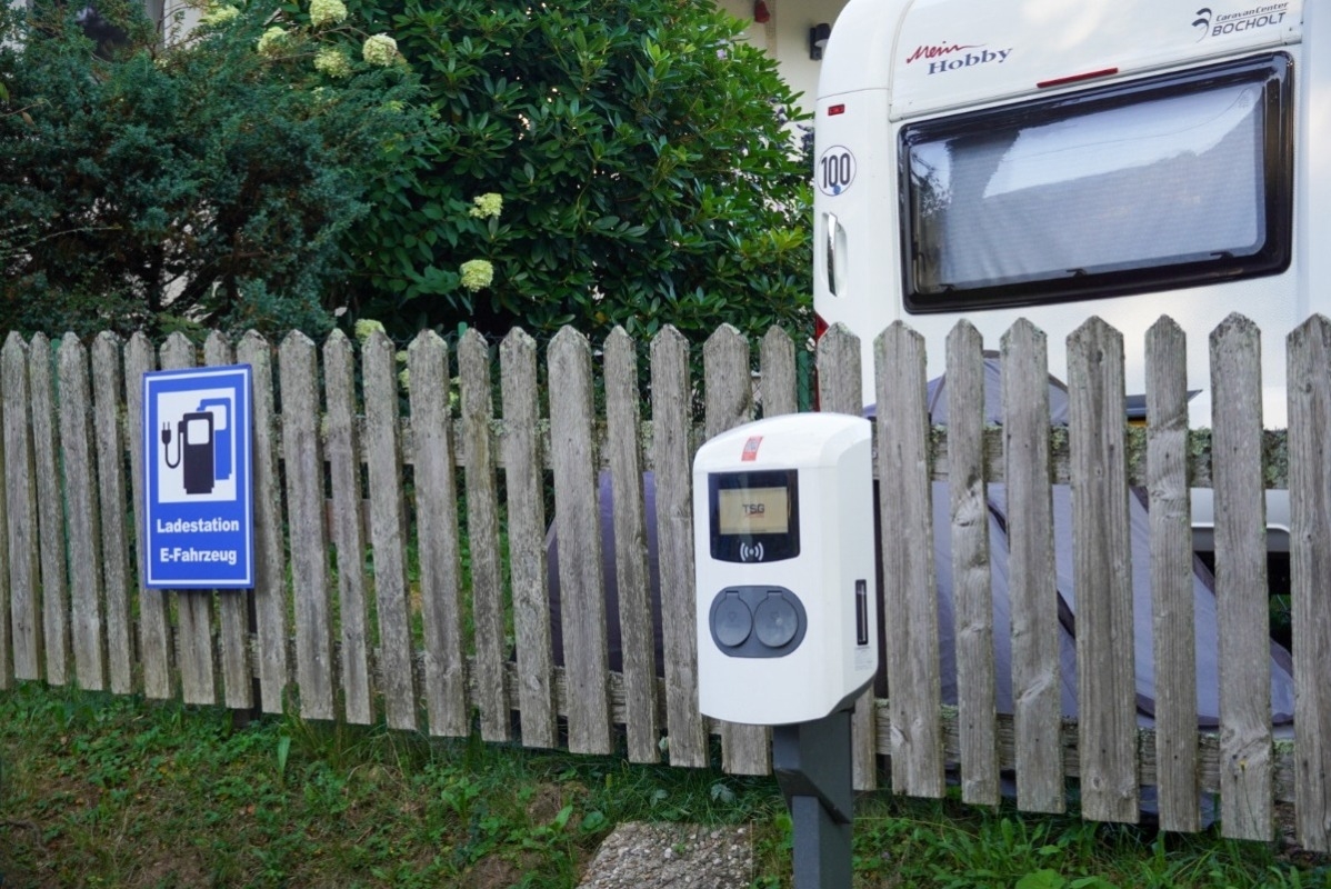The charging stations are located in the campsite parking lot and can be used at any time.